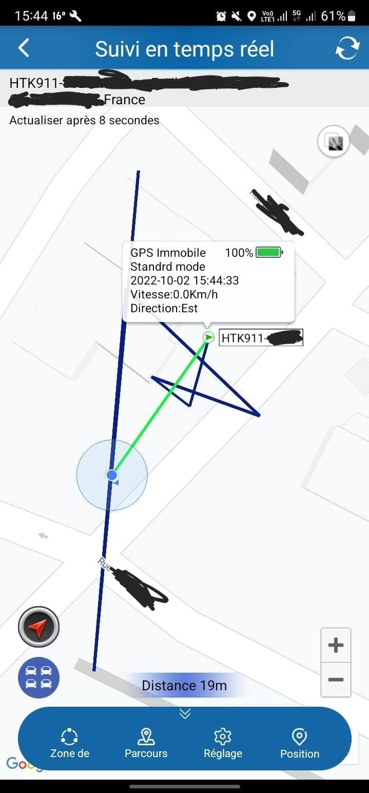 Le suivi marche vraiment mieux en mode temps réel. Dans les autres modes, la précision varie beaucoup, chez moi ça allait de 100 à 200 mètres. Du coup, si on n’a pas besoin de suivre tout le temps, je laisse le mode 24h, et quand je veux localiser précisément, je le passe à distance en temps réel. Là, la précision est très bonne, à quelques mètres près.